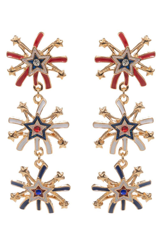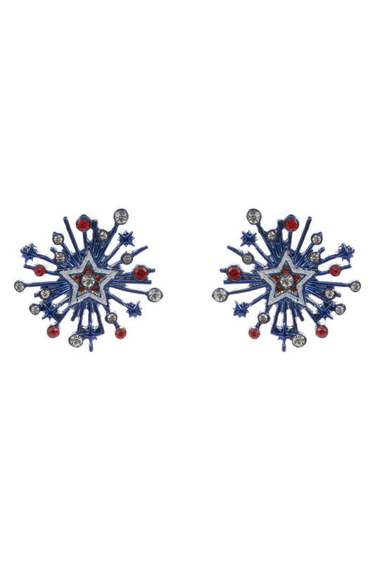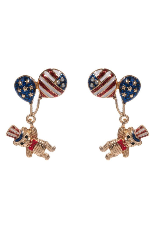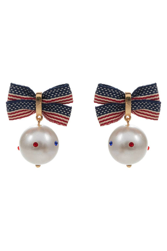 Bow Enamel American Flag Pattern Post Earrings: MUL3 / ONE