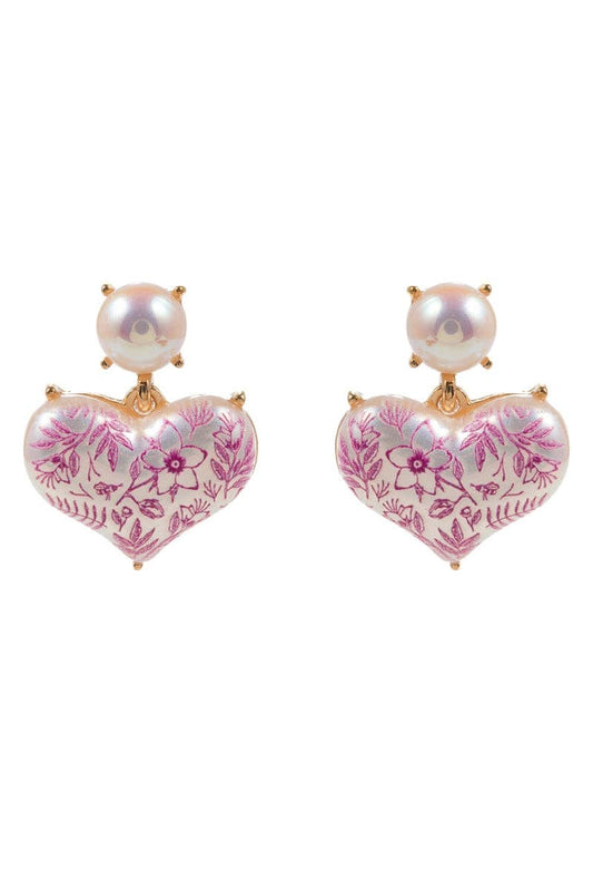 GOLD PUFFY HEART WITH BEADED EDGE STUD EARRINGS