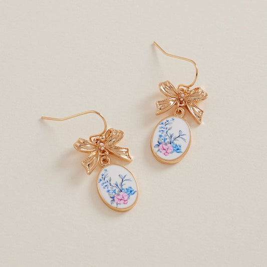 Ceramic Bow Enamel Casting Flower Pattern Earrings