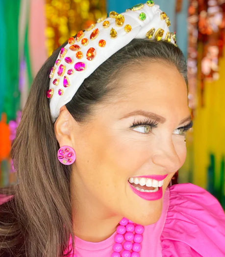 Brianna Cannon White & Crimson Glitter Boomer Sooner Earrings