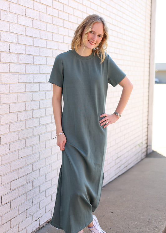 RED STRIPE SIDE SPLIT PULLOVER MIDI DRESS