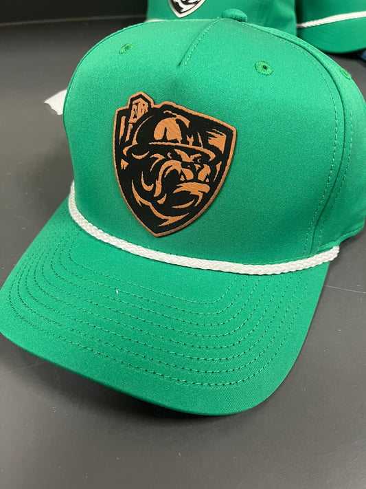GREEN/WHITE/GREY HAT WITH OFF CENTER SILVER ROUGHERS PATCH