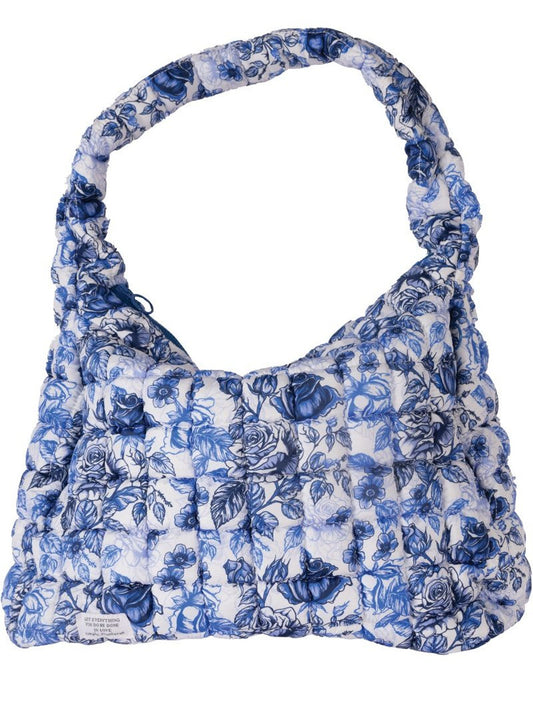 GOLD MULTI CHARM NECKLACE W/BLUE FLORAL CHARMS