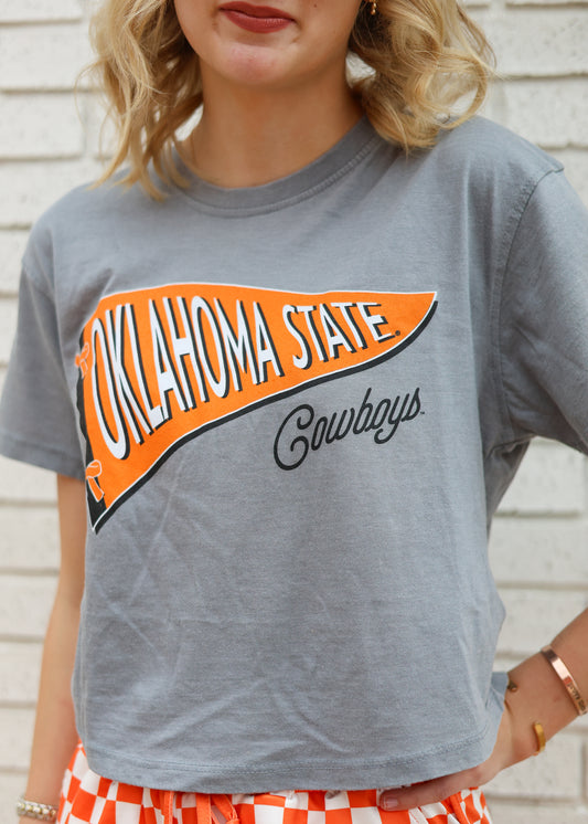 GREY PENNANT WAVE TEE - OK STATE COWBOYS