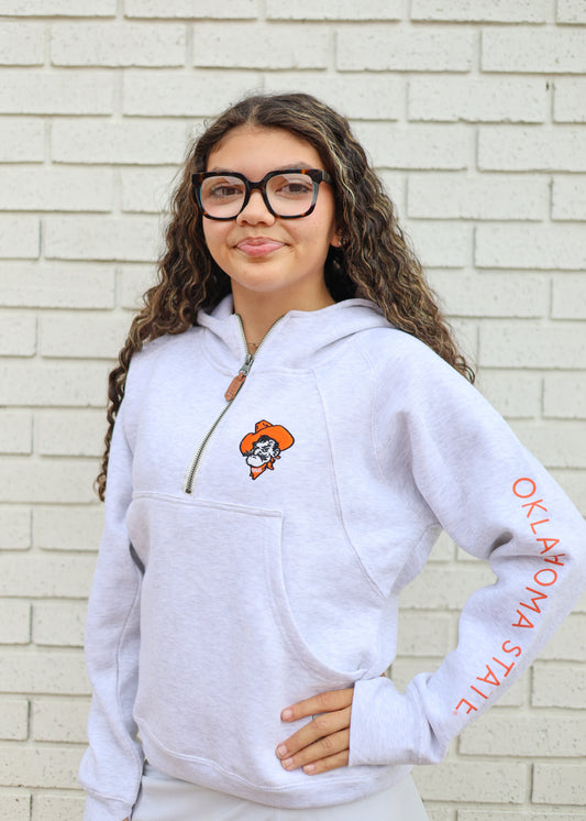 OSU EMBROIDERED 1/2 ZIP HOODIE WITH POCKET