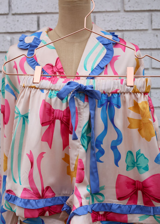 MULTI COLOR BOWS RUFFLES 2PC PAJAMA SHORT SET
