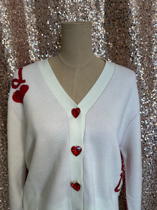 WHITE QUEEN OF HEARTS CARDIGAN & SKIRT SET