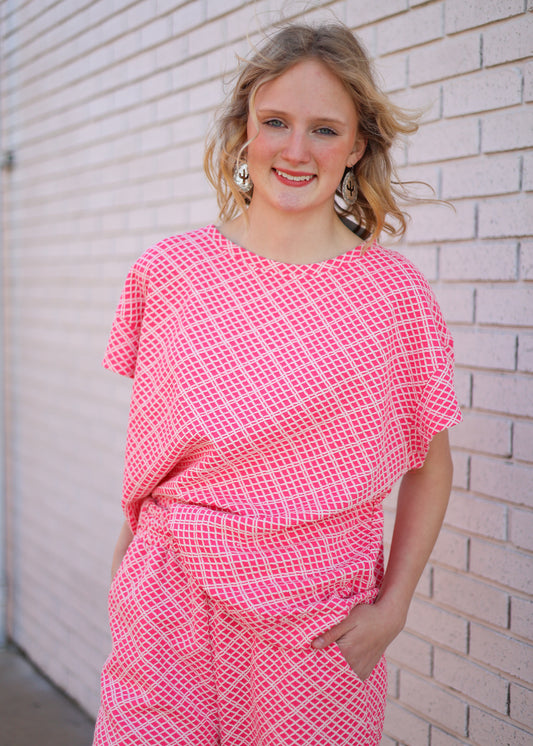 Sold outPINK & WHITE TEXTURED 2PC PANT SET