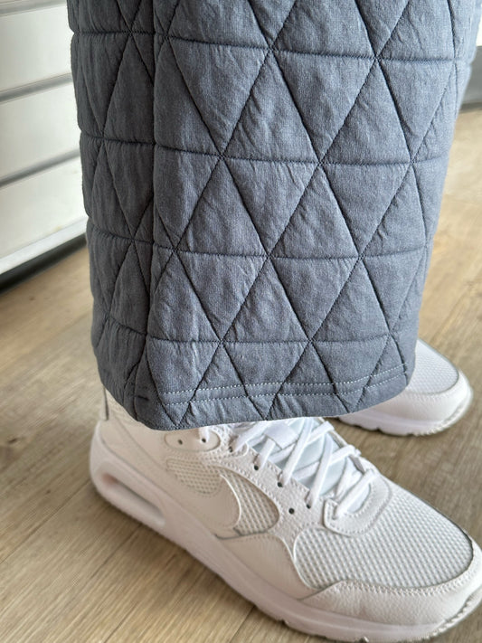 Luxe Smoky Denim Blue Quilted Short-Sleeved Straight Leg Set