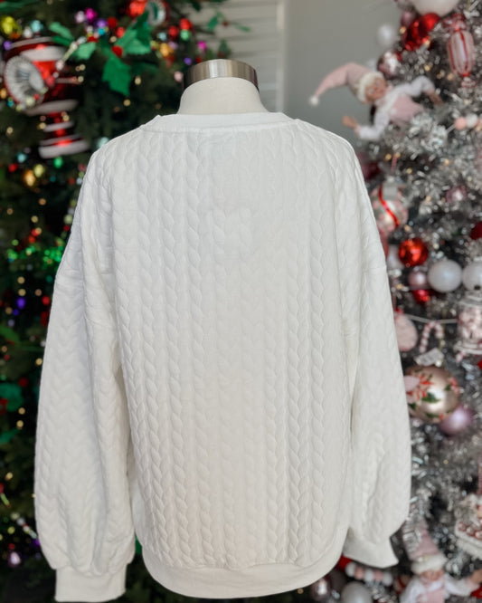 QUILTED MERRY & BRIGHT SWEATSHIRT - WHITE