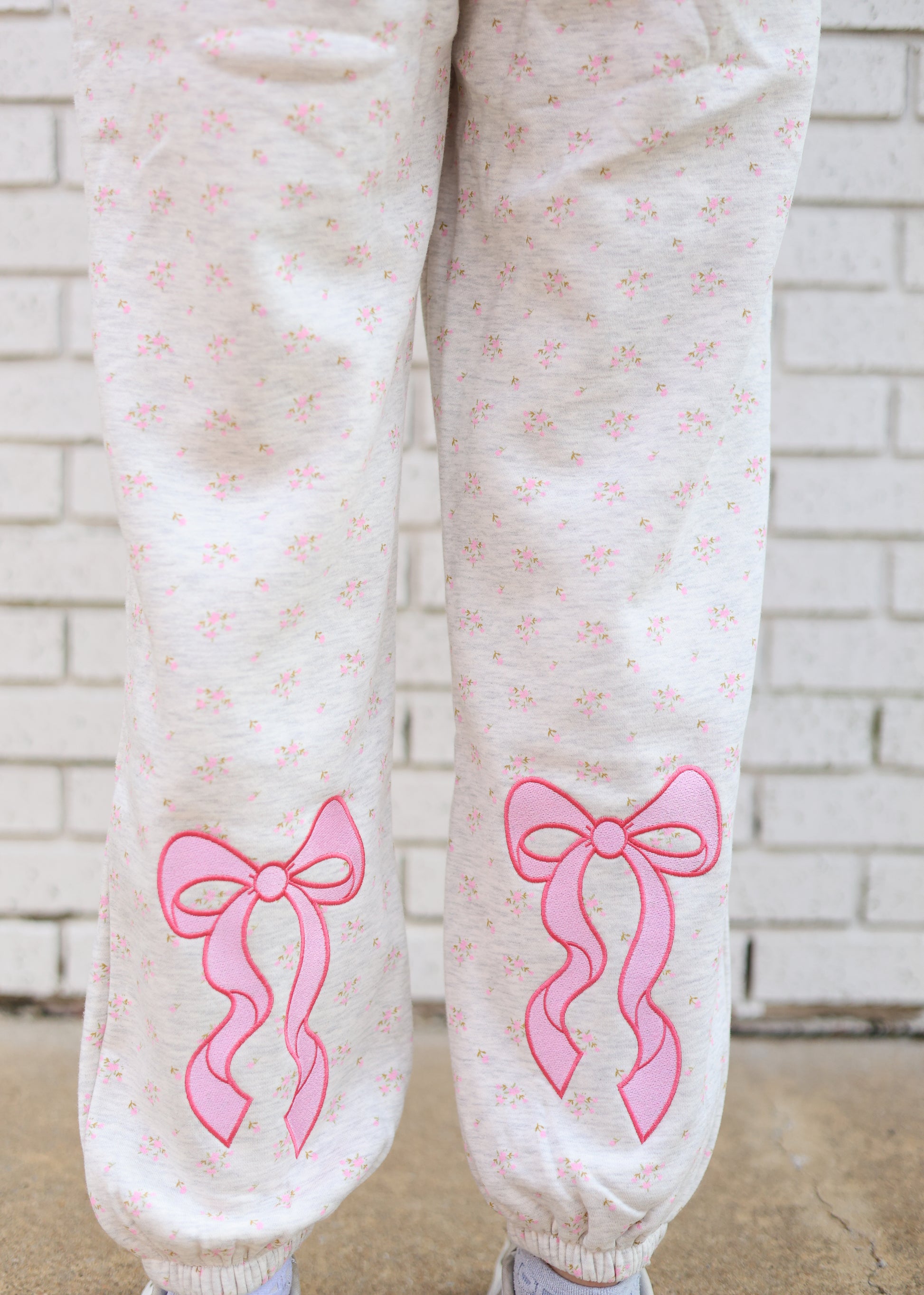 ALICE FLORAL SWEAT PANTS WITH PINK BOWS