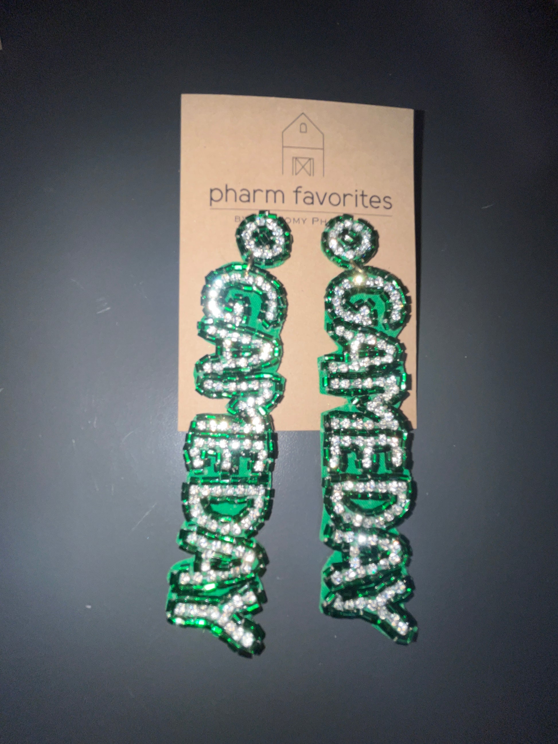 BEADED "GAMEDAY" EARRING - GREEN/WHITE