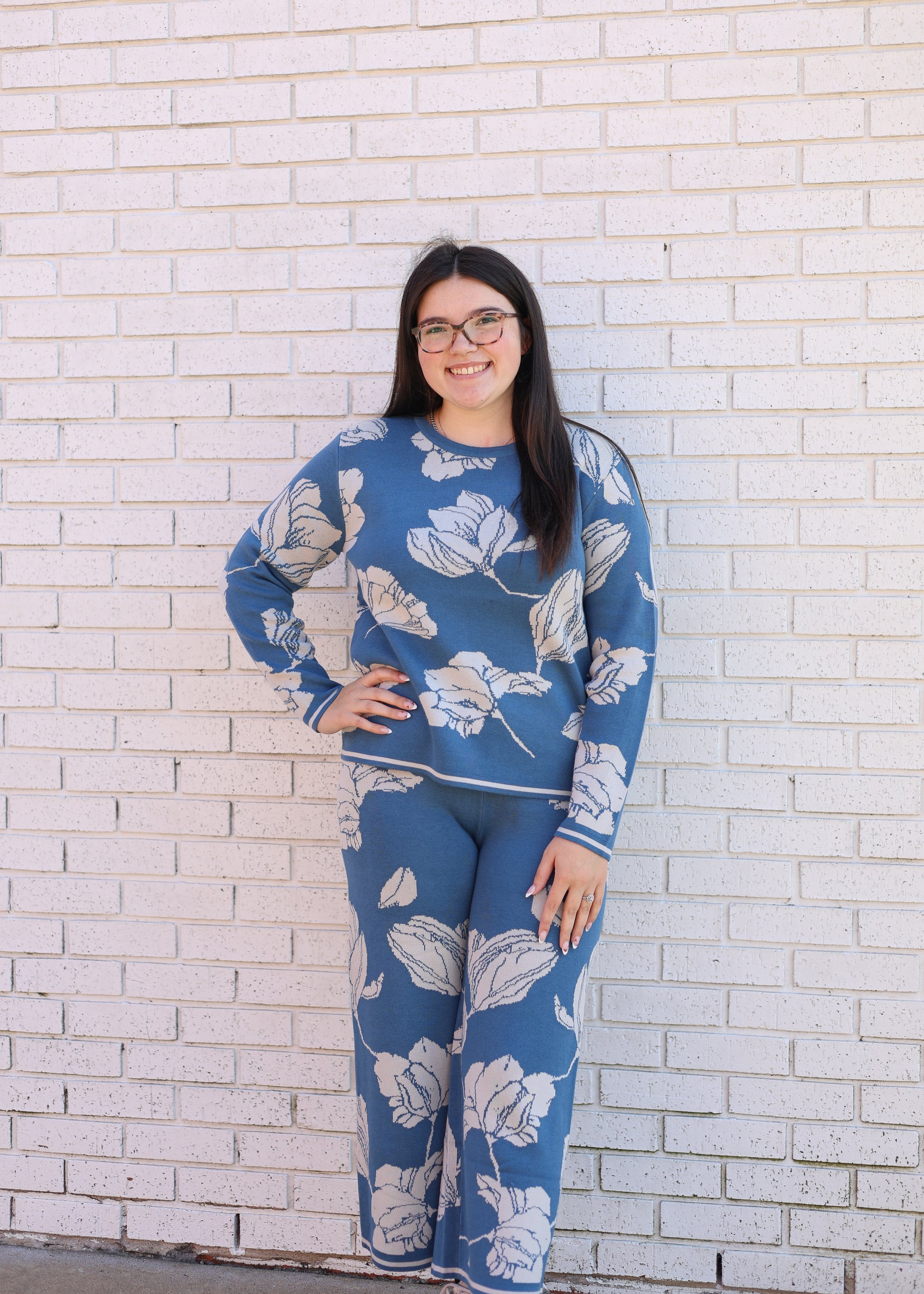 BLUE JACQUARD 2PC SWEATER & PANT SET