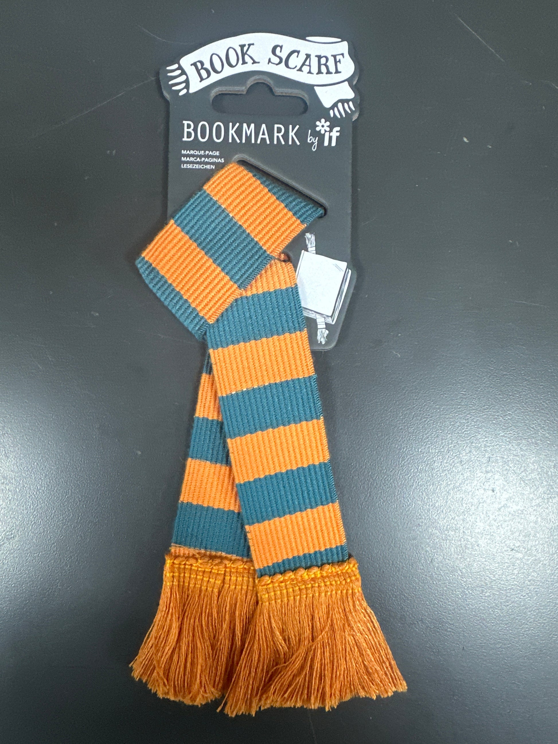 BOOK SCARF BOOKMARK - TEAL & ORANGE