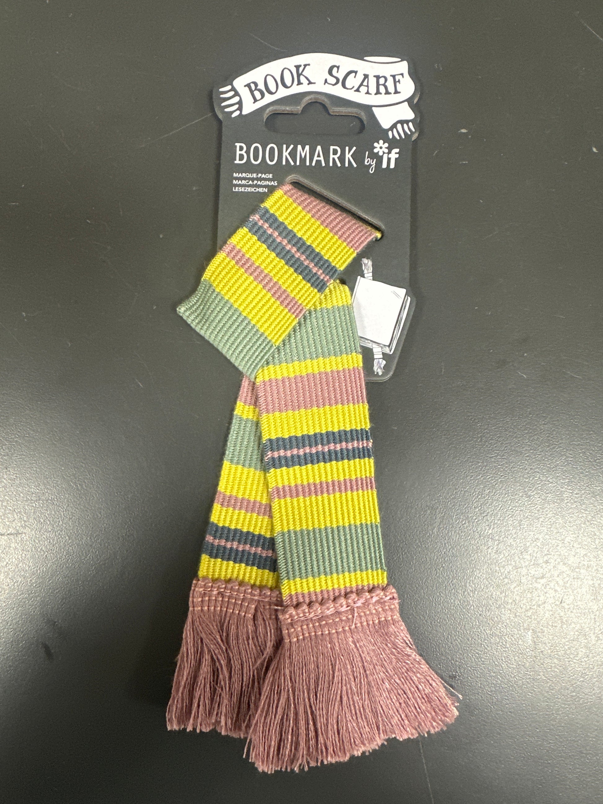 A fun and funky way to dress up your book 38cm long woven scarf including matching fringeLong enough to flop through most books - even bigger ones!Fits within our bookmark program with a hanging header cardTwelve different color combinations to choose from