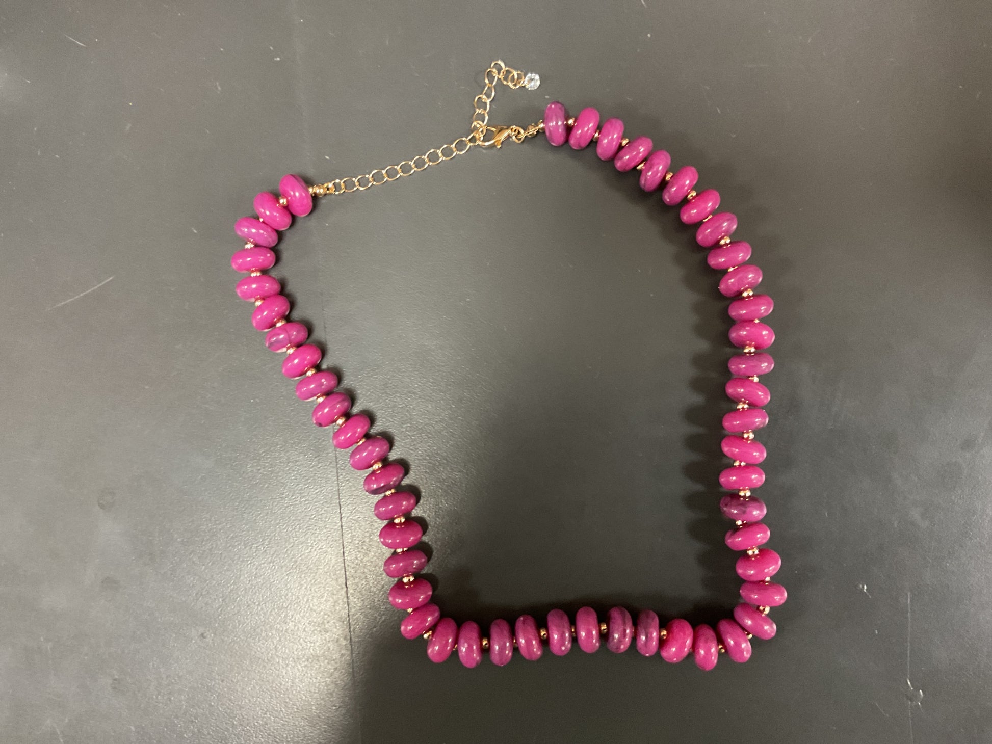CHUNKY STONE BEADS NECKLACE - FUCHSIA