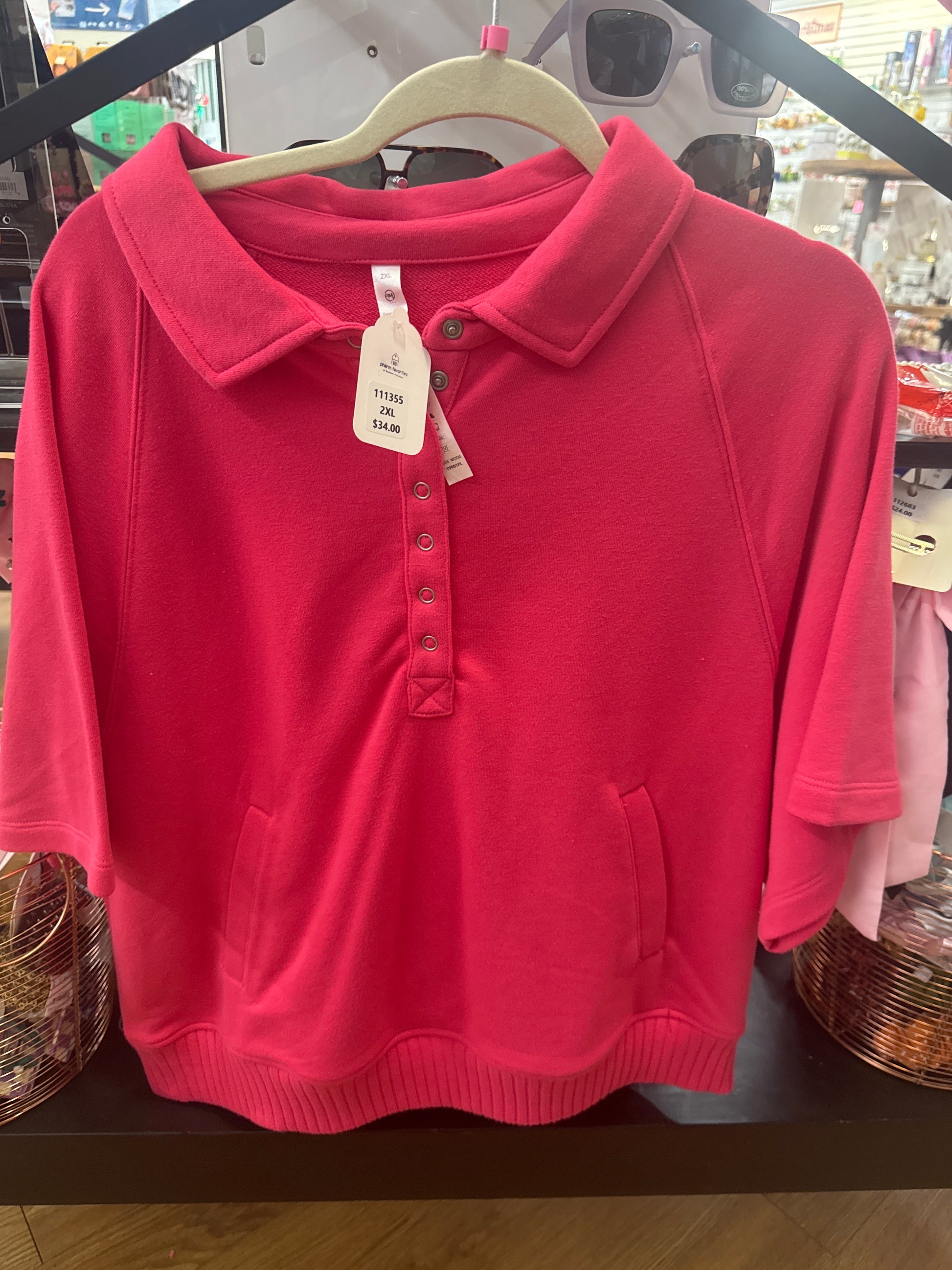 COLLARED SS SWEATSHIRT - FLAMINGO PINK - 2XL