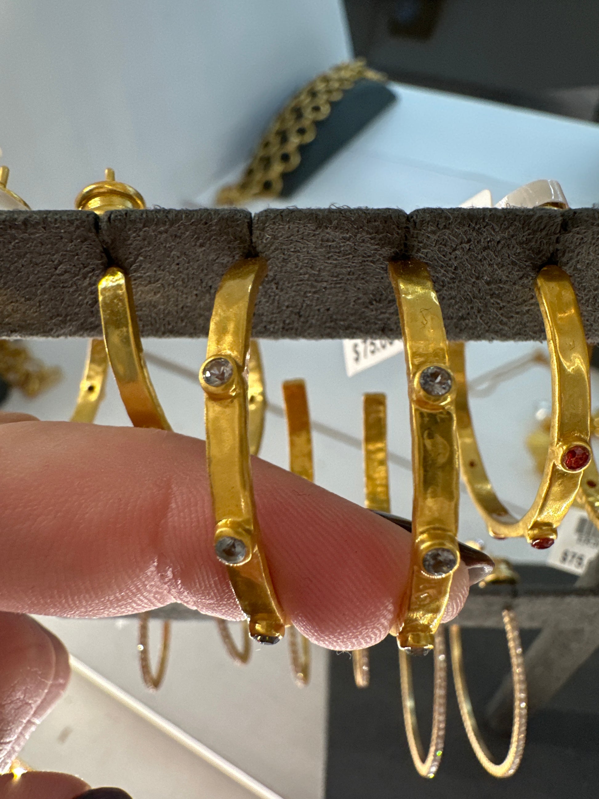CRESCENT STONE HOOP GOLD OBSIDIAN CLEAR- M