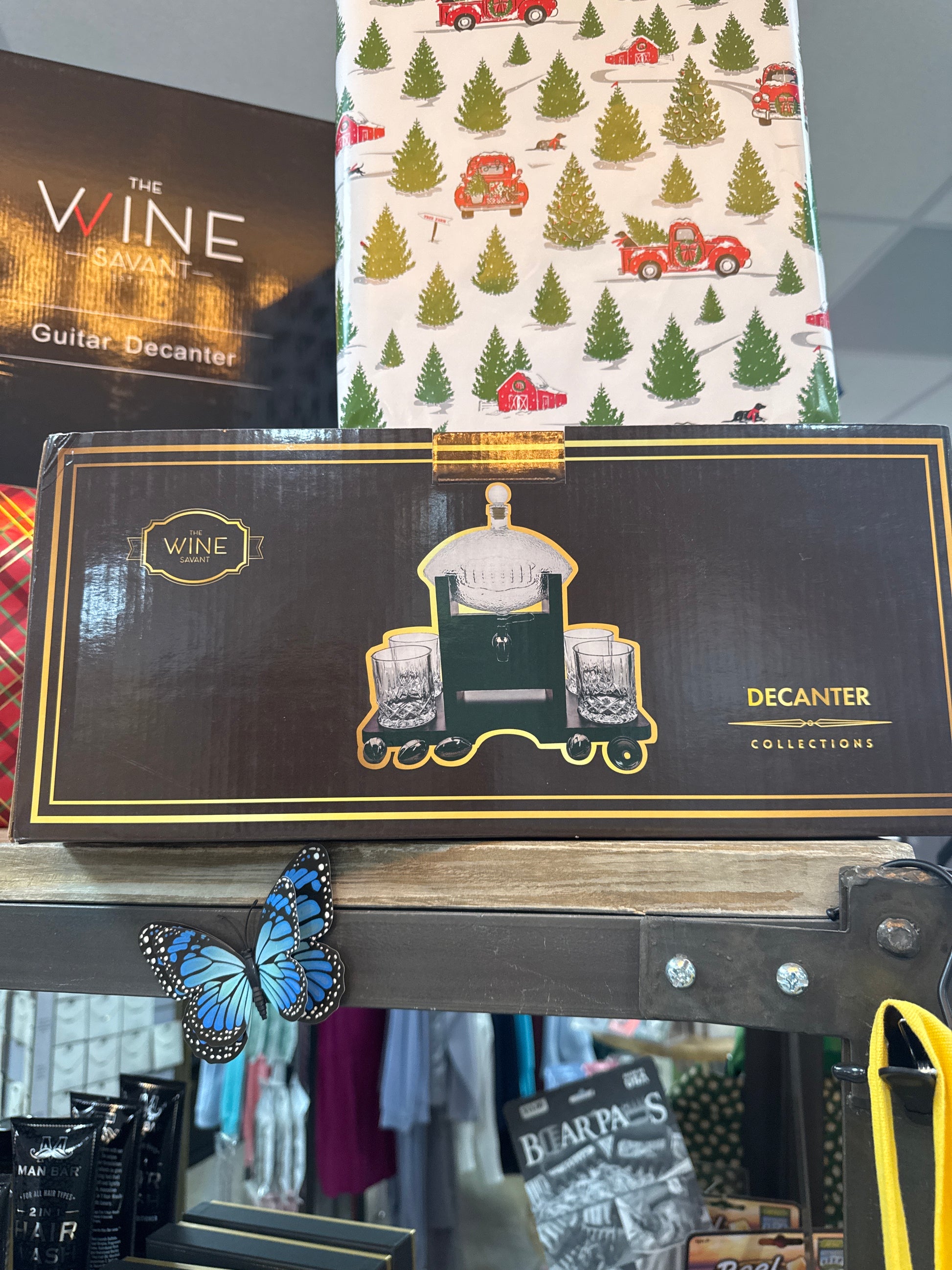 DECANTER - FOOTBALL W/STAND & 4 GLASSES