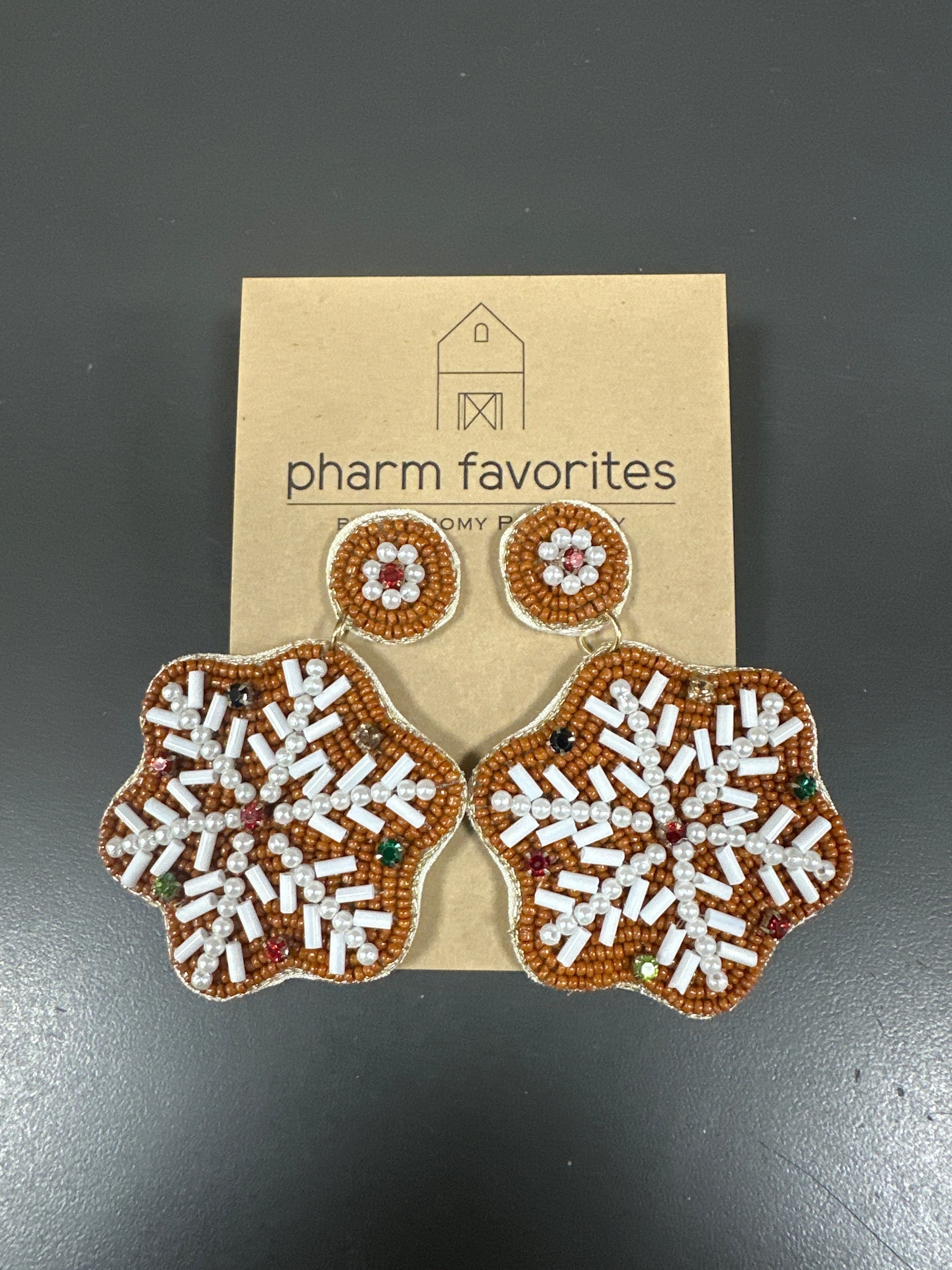 BEADED GINGERBREAD SNOWFLAKE EARRING