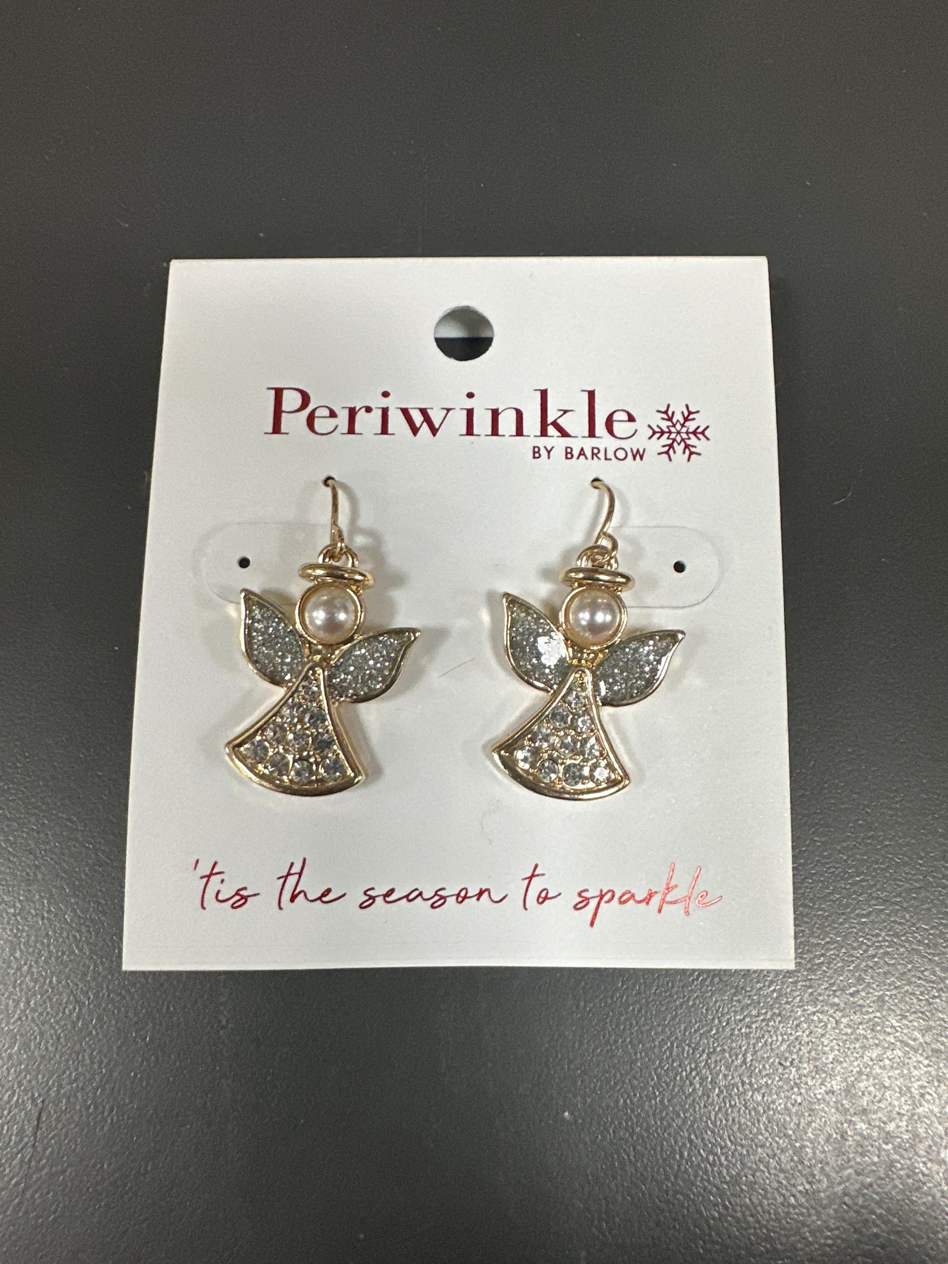 GOLD GLITTER AND PEARL ANGEL EARRINGS