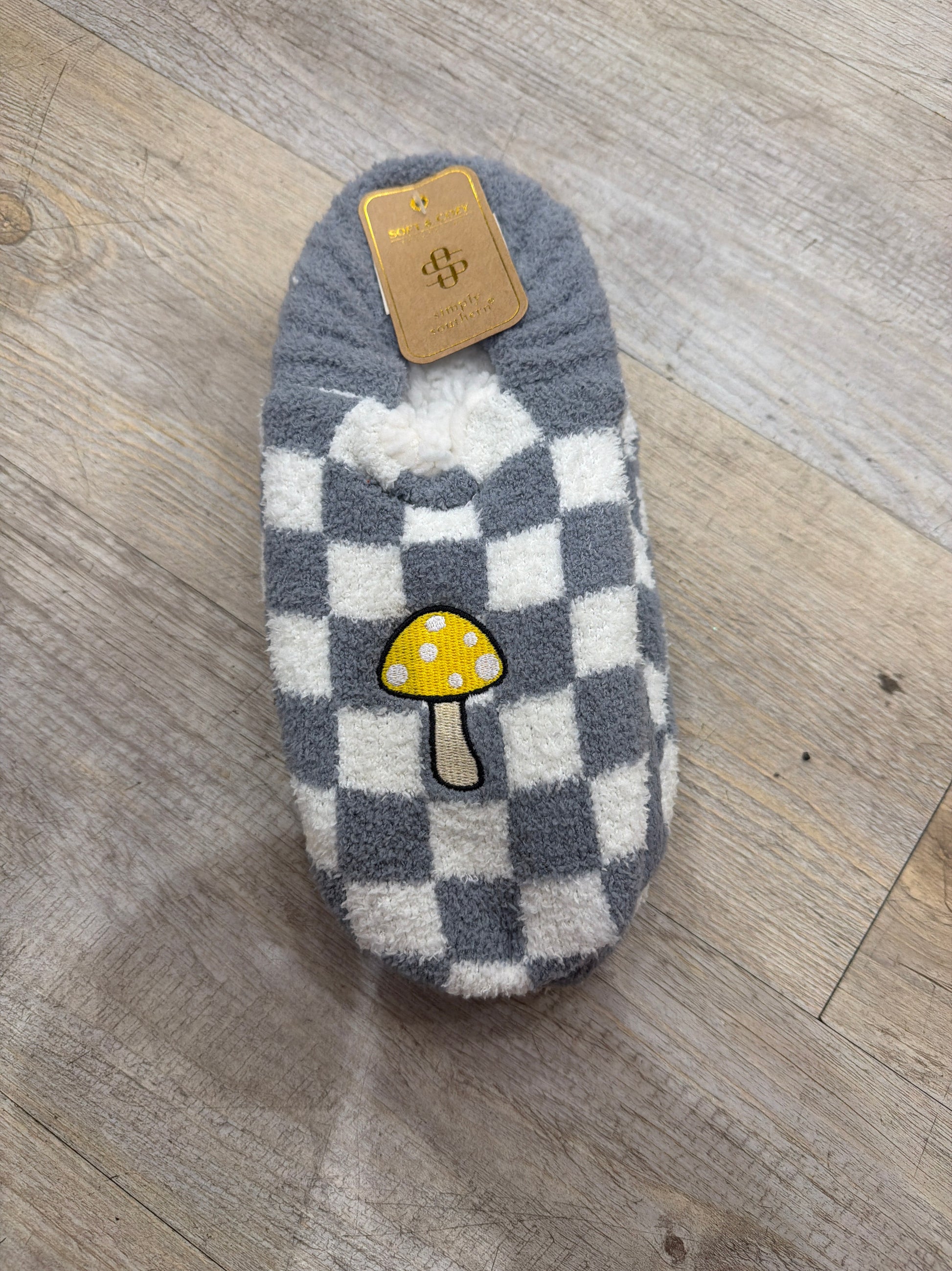 GRAY CHECKERED MUSHROOM SLIPPERS