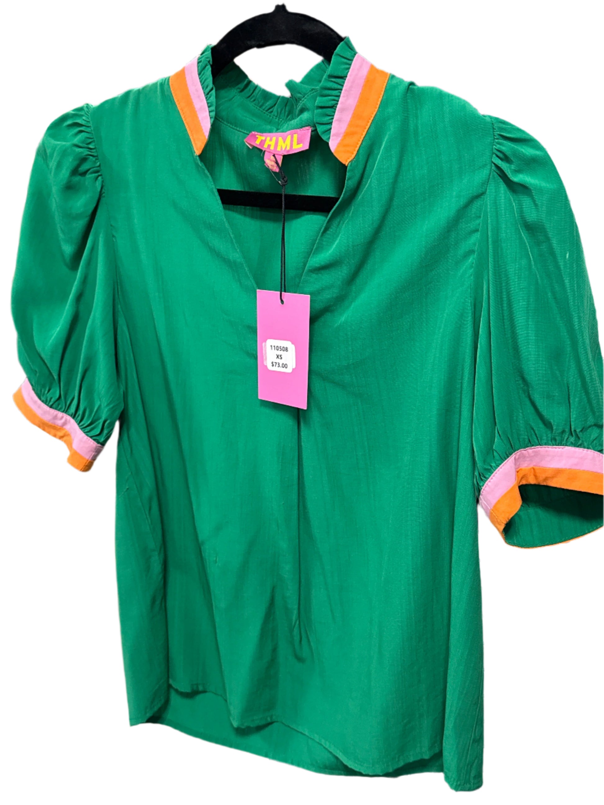 Get ready to turn heads in this GREEN SHORT SLEEVE STRIPE DETAIL BLOUSE! The perfect combination of bold and playful, this blouse features eye-catching stripes and a trendy short sleeve design. Whether you're dressing up for a night out or keeping it casual, this blouse is sure to add a touch of fun to any outfit.