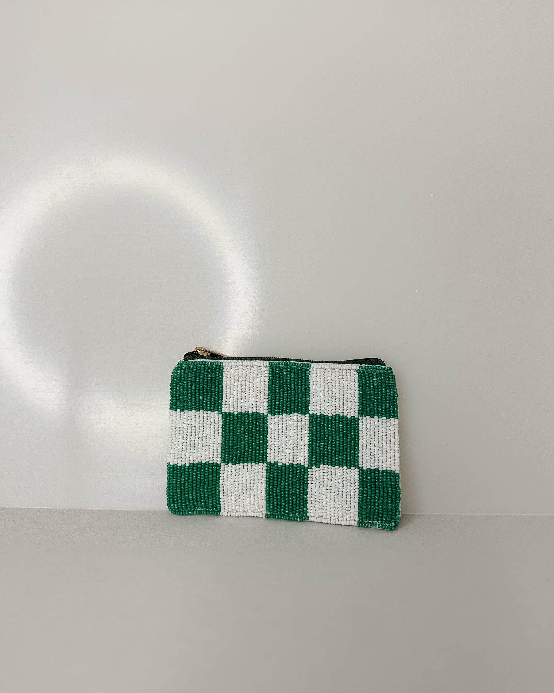 Stash your spare change in style with this charming beaded coin purse. The crisp green and white checked pattern brings a fresh, preppy vibe to your everyday carry, while delicate beadwork adds a touch of handcrafted elegance. Perfect for organizing coins, cards, or small treasures—whether you're heading to the market or gifting to a friend who loves quirky accessories. A little pouch with major personality.