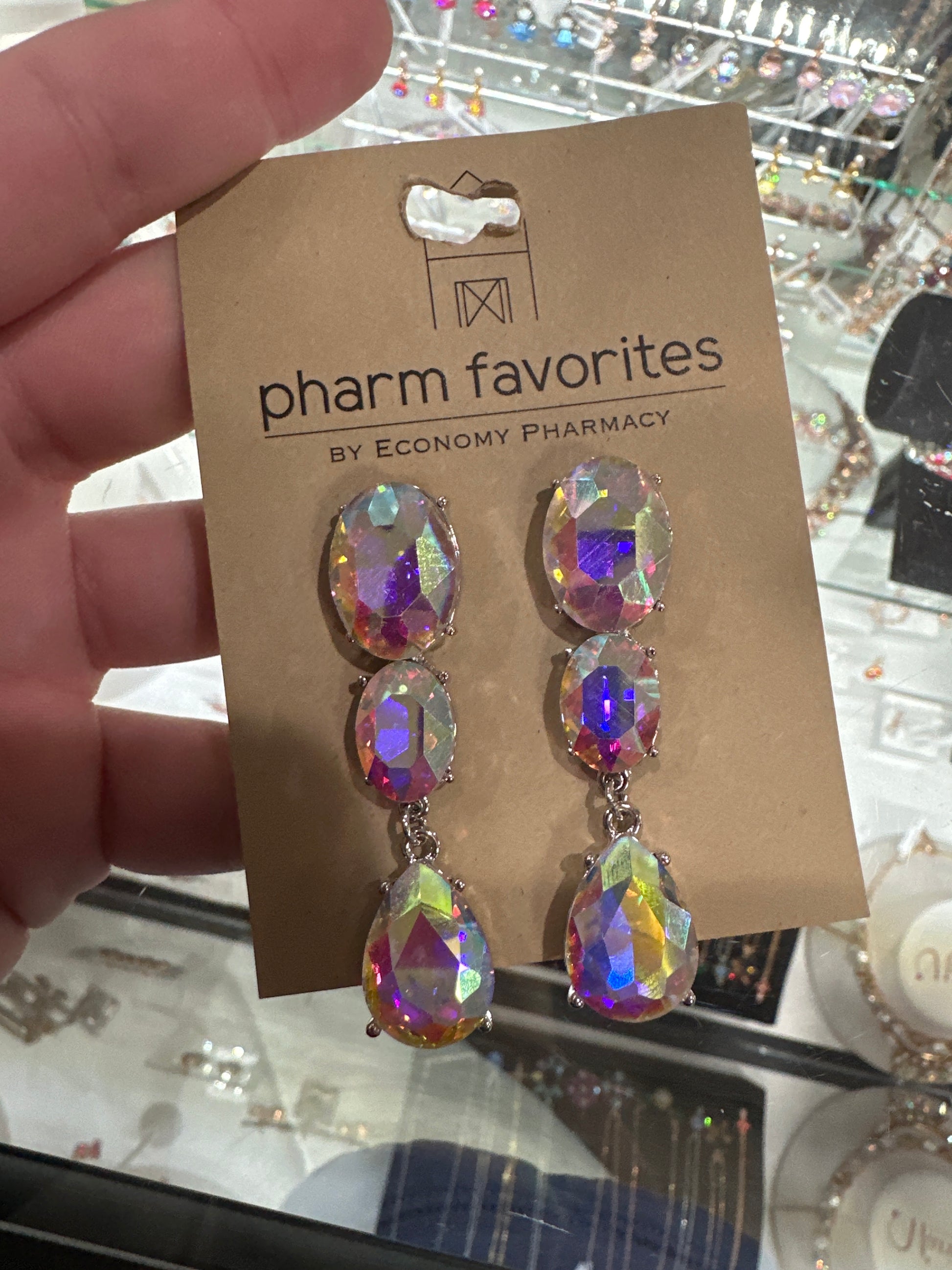 IRIDESCENT RHINESTONE 3 DROP EARRINGS