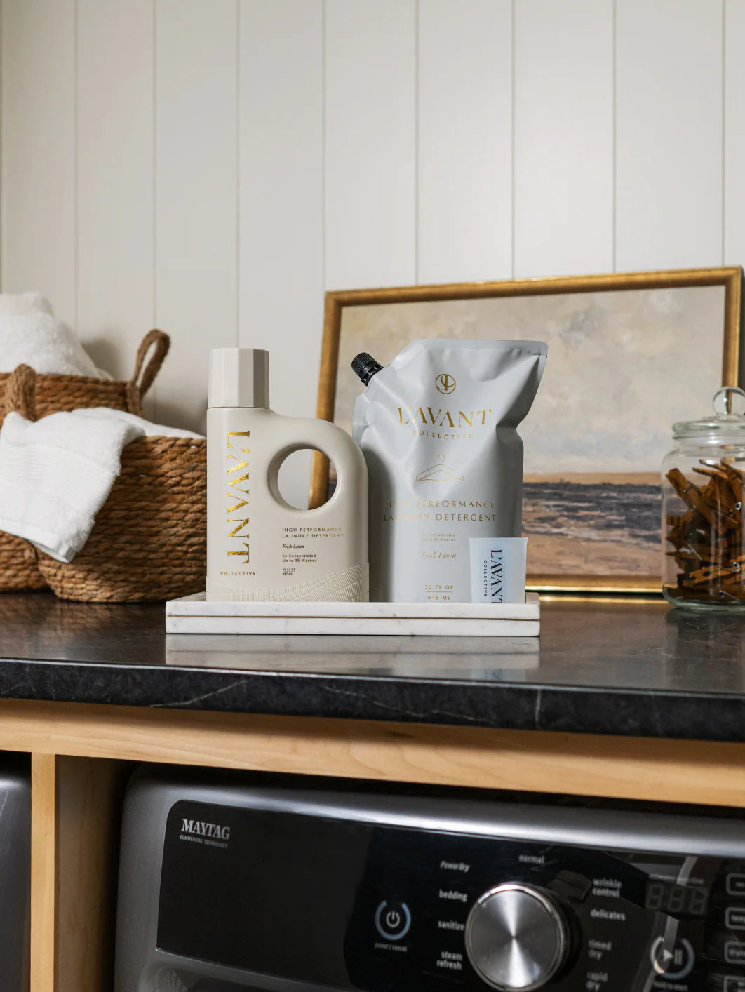 Our laundry bottles are made with durable recycled plastic that are meant to be reused and refilled. Now you can! This 32oz refill pouch uses 75% less plastic than the L'AVANT laundry bottle. Or use this refill pouch to fill a bottle of your choice!