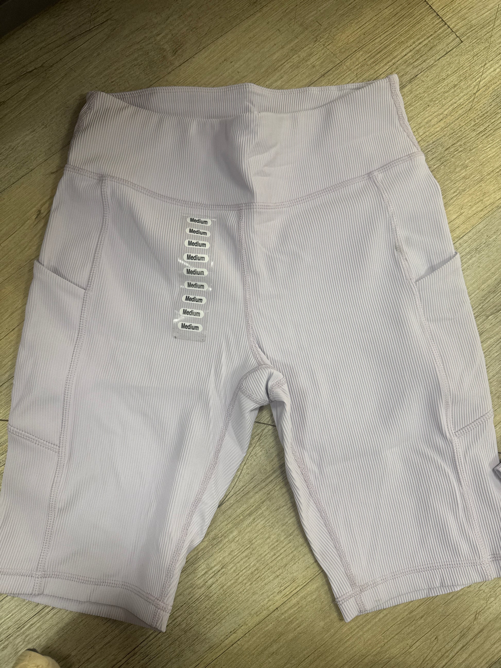 LAVENDER RIBBED BIKER SHORTS W/POCKETS