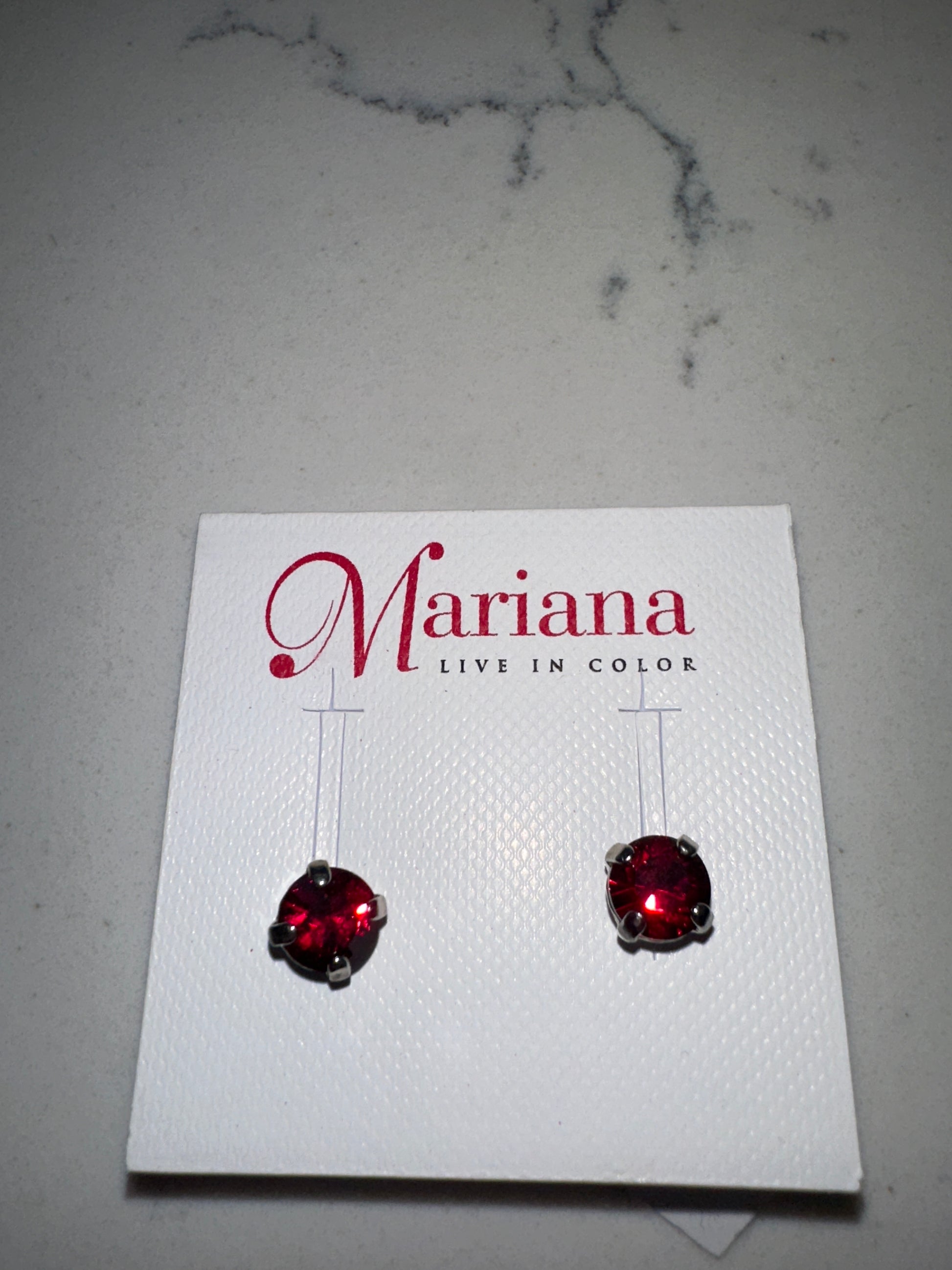 MARIANA EARRINGS - SLVR - RED CRYSTAL STUDS