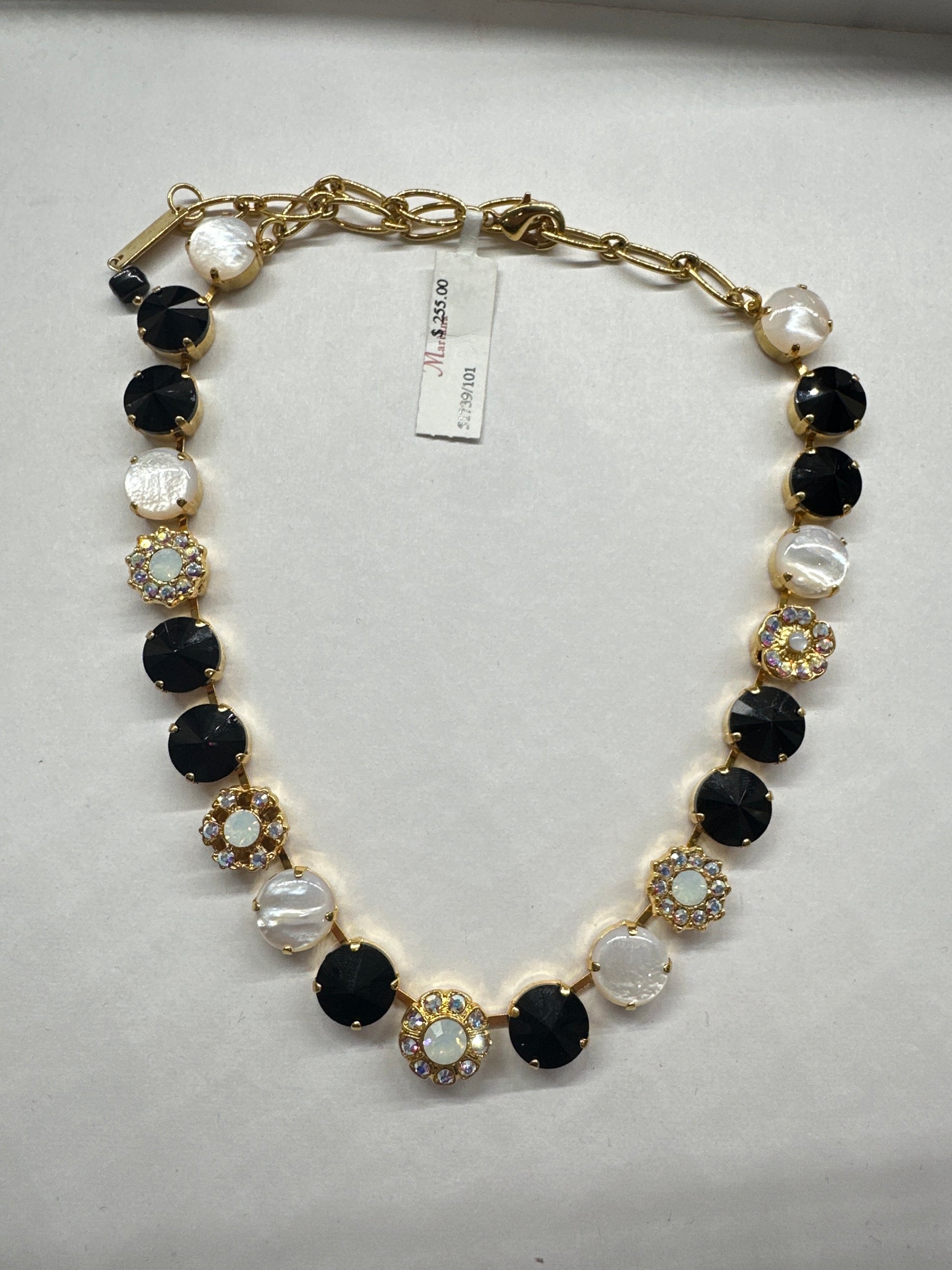 MARIANA NECKLACE-GLD-LG CLSTRS&STONES BLK/WHT/CLR