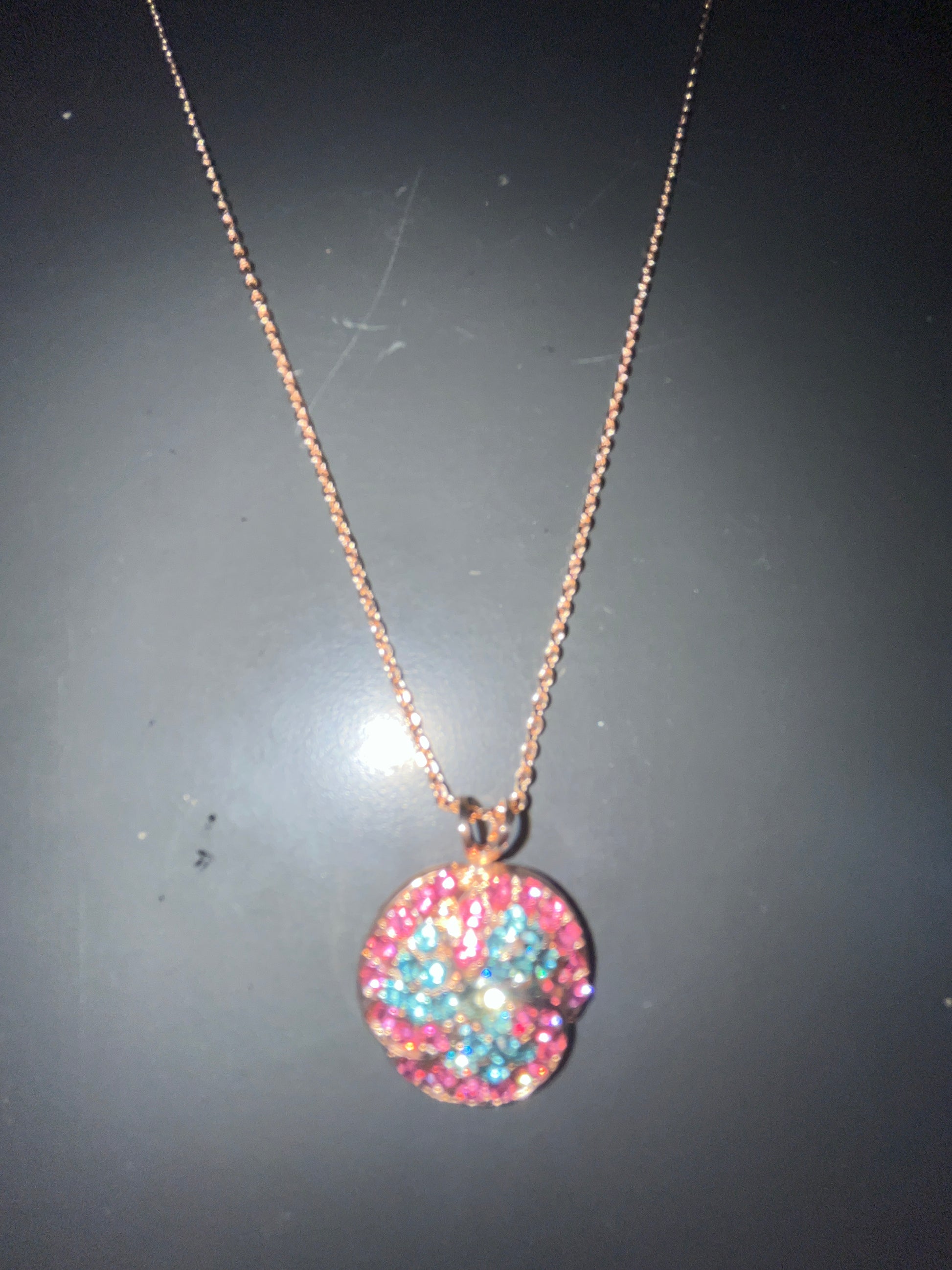 MARIANA - NECKLACE - ROSE GOLD - PINK AND TURQUOISE MEDALLION