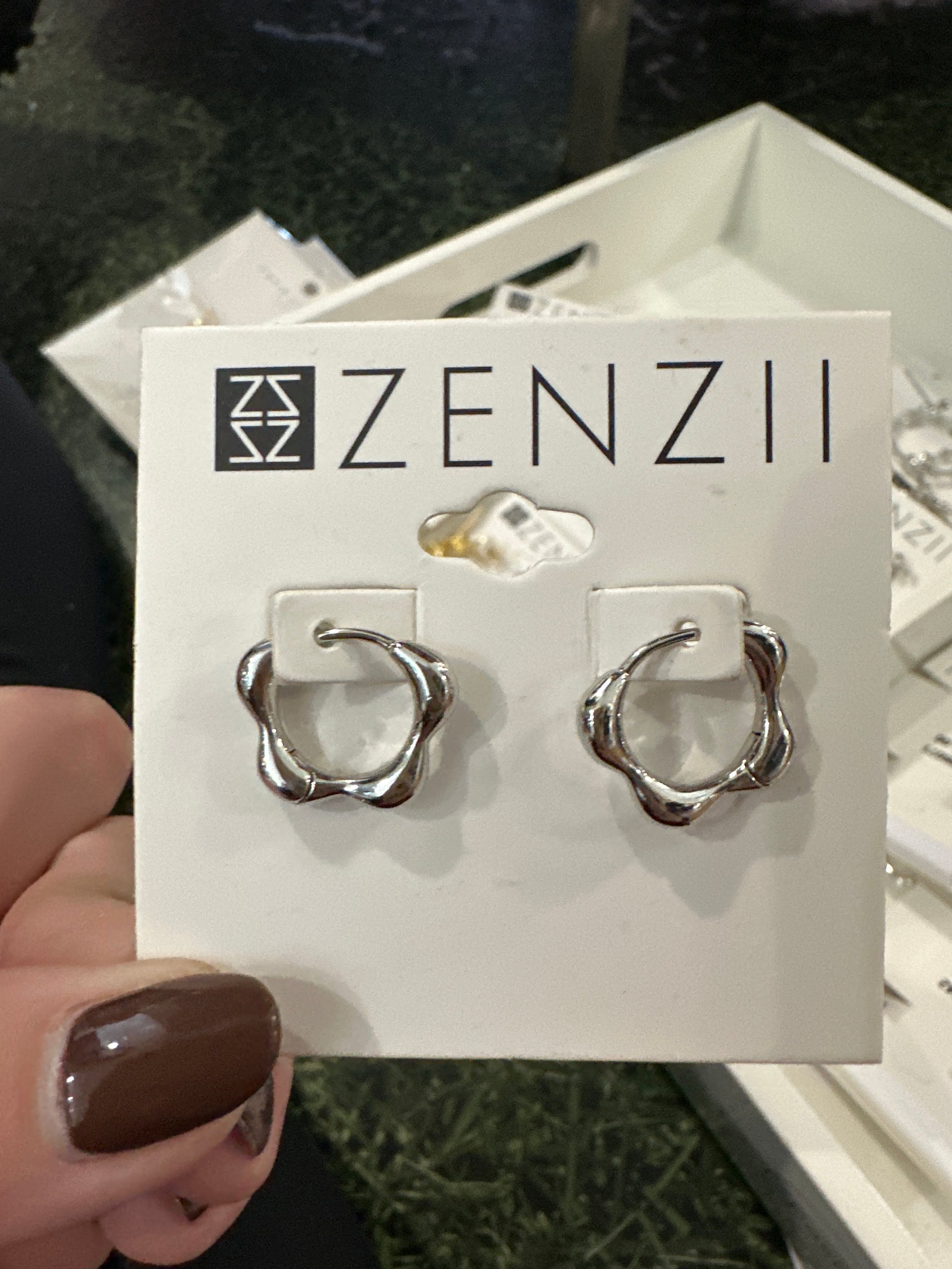 METAL FLOWER HUGGIE EARRINGS - SLVR