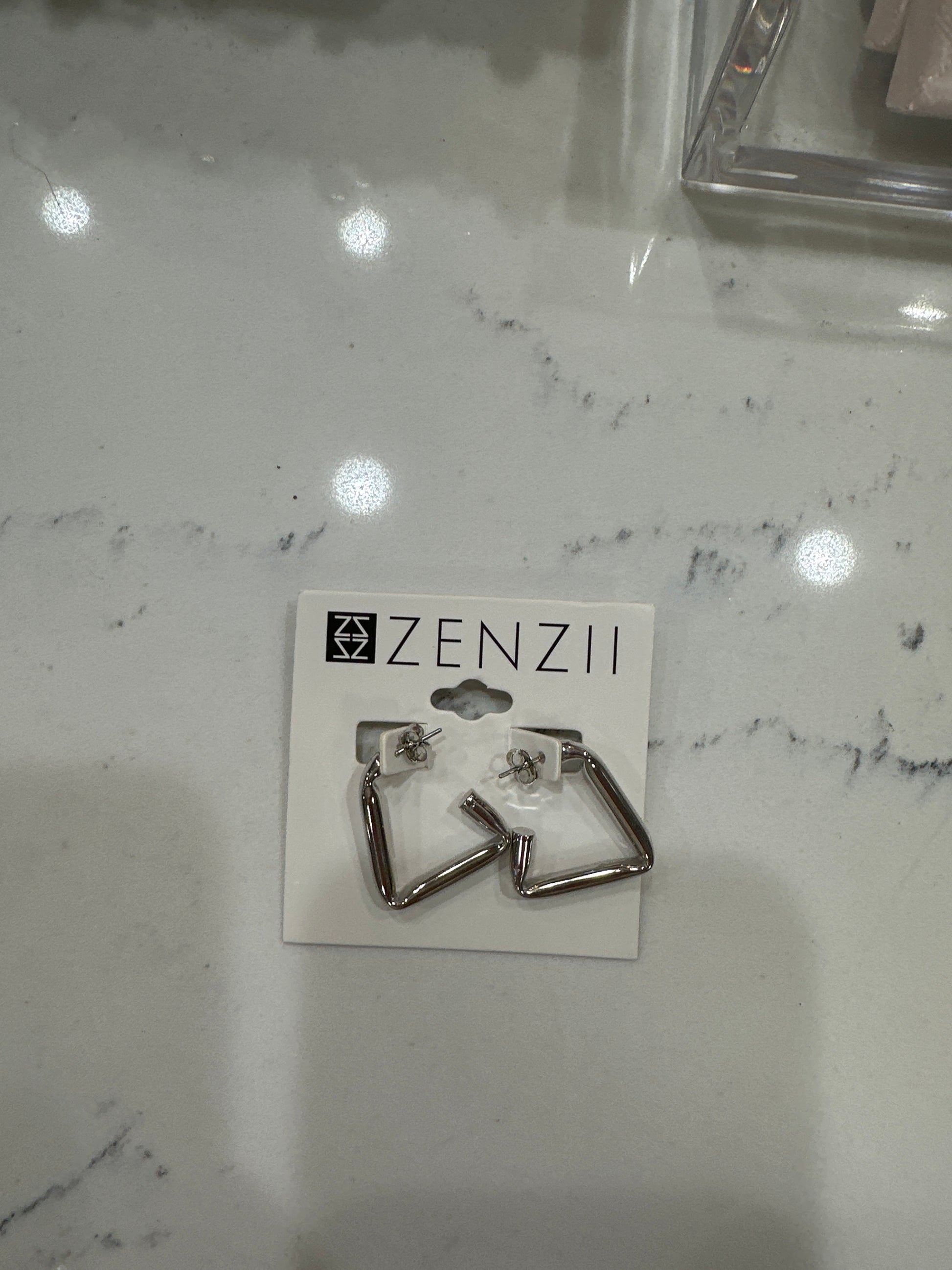METAL TRIANGLE HOOP EARRINGS - SILVER
