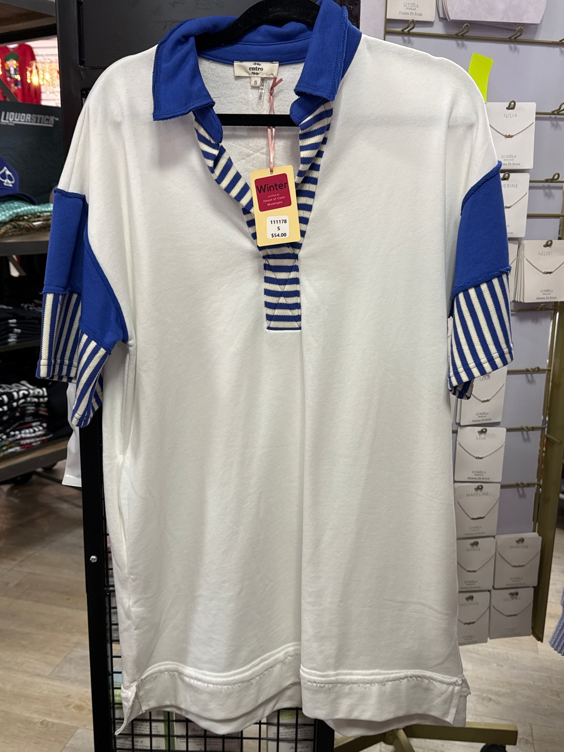 OFF WHITE/BLUE STRIPE POLO SHIRT DRESS