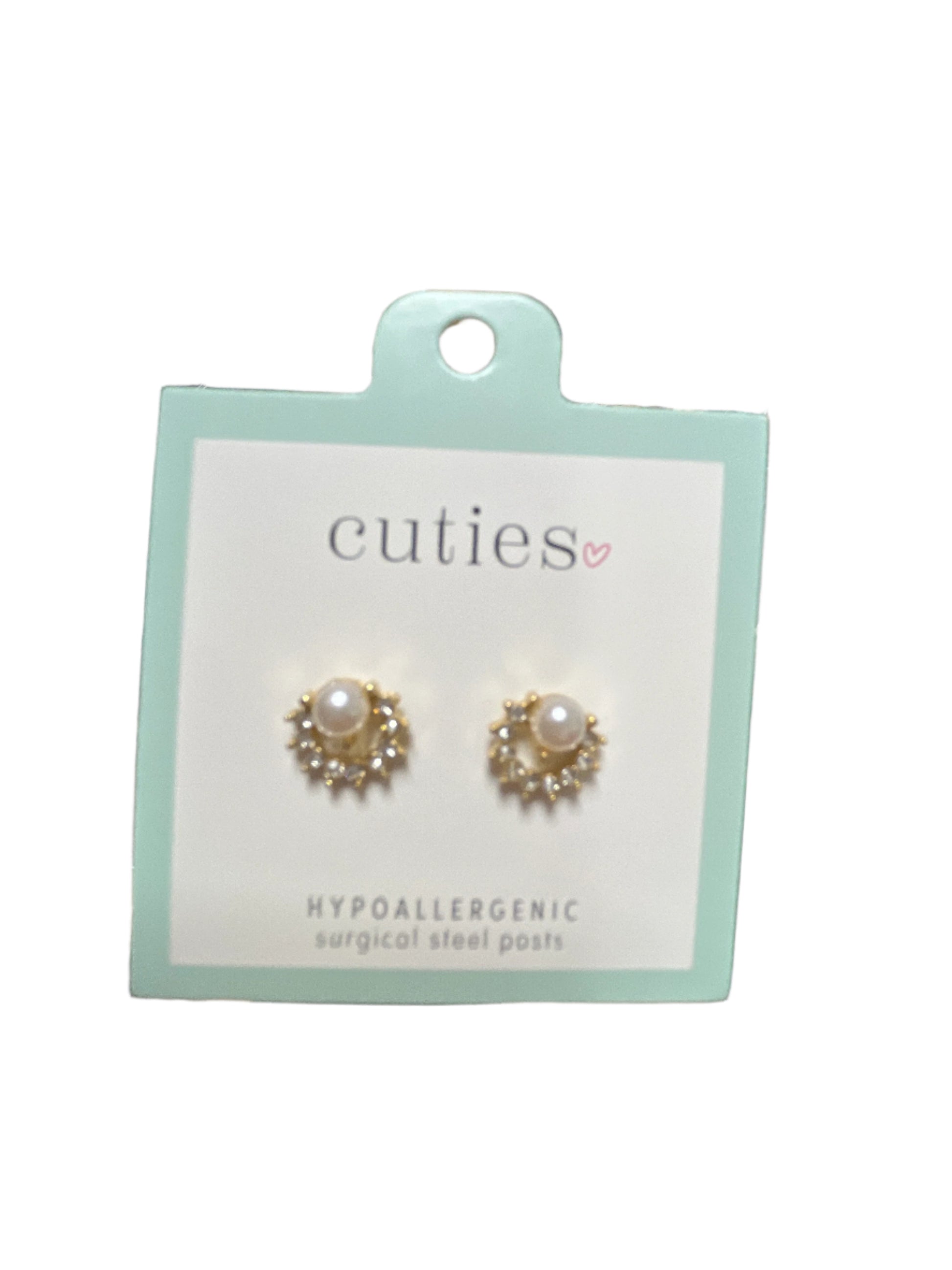 PEARL WITH CRYSTAL RING GOLD EARRINGS