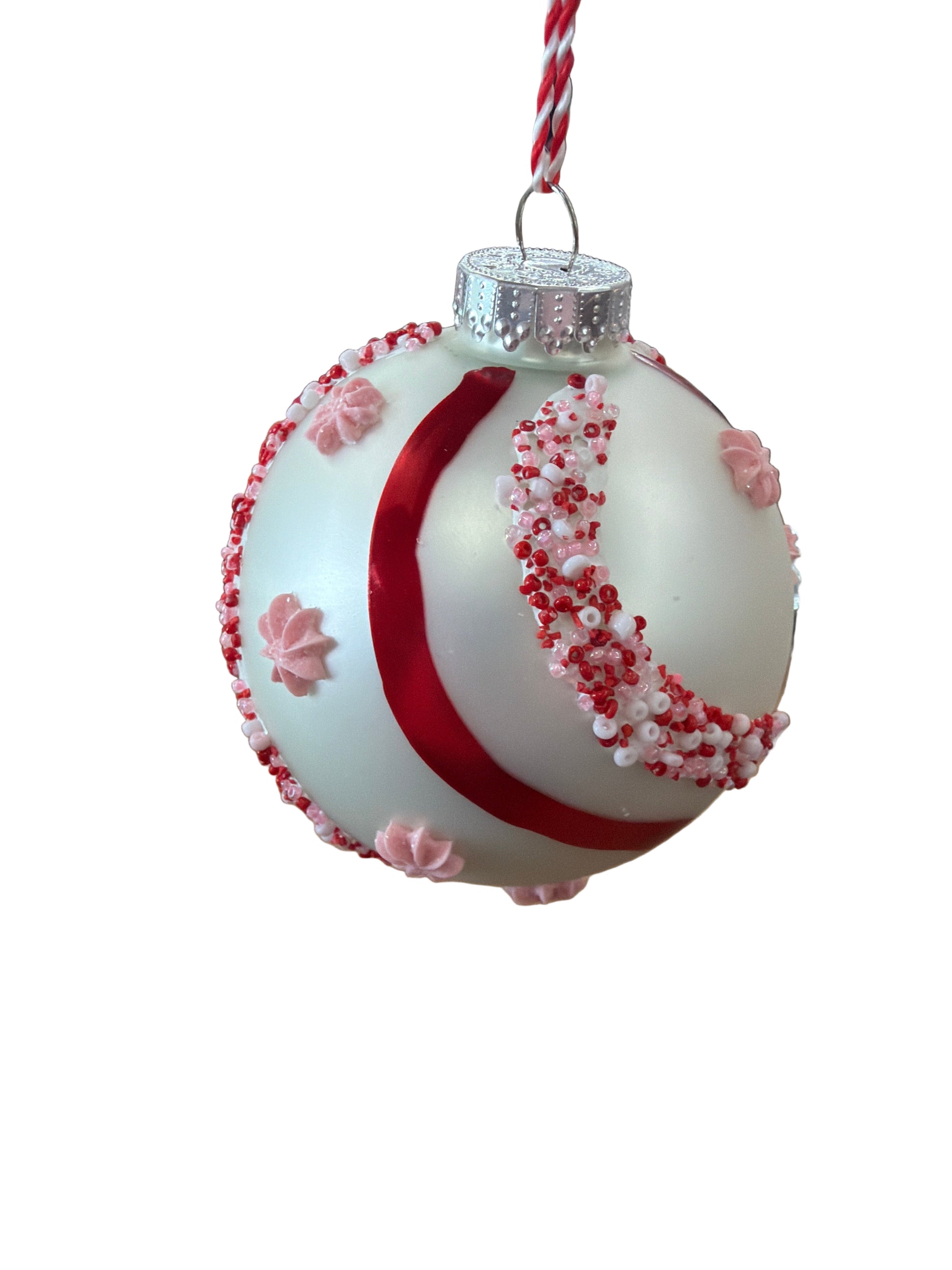 RAZ ORNAMENT-BEADED PEPPERMINT BALL