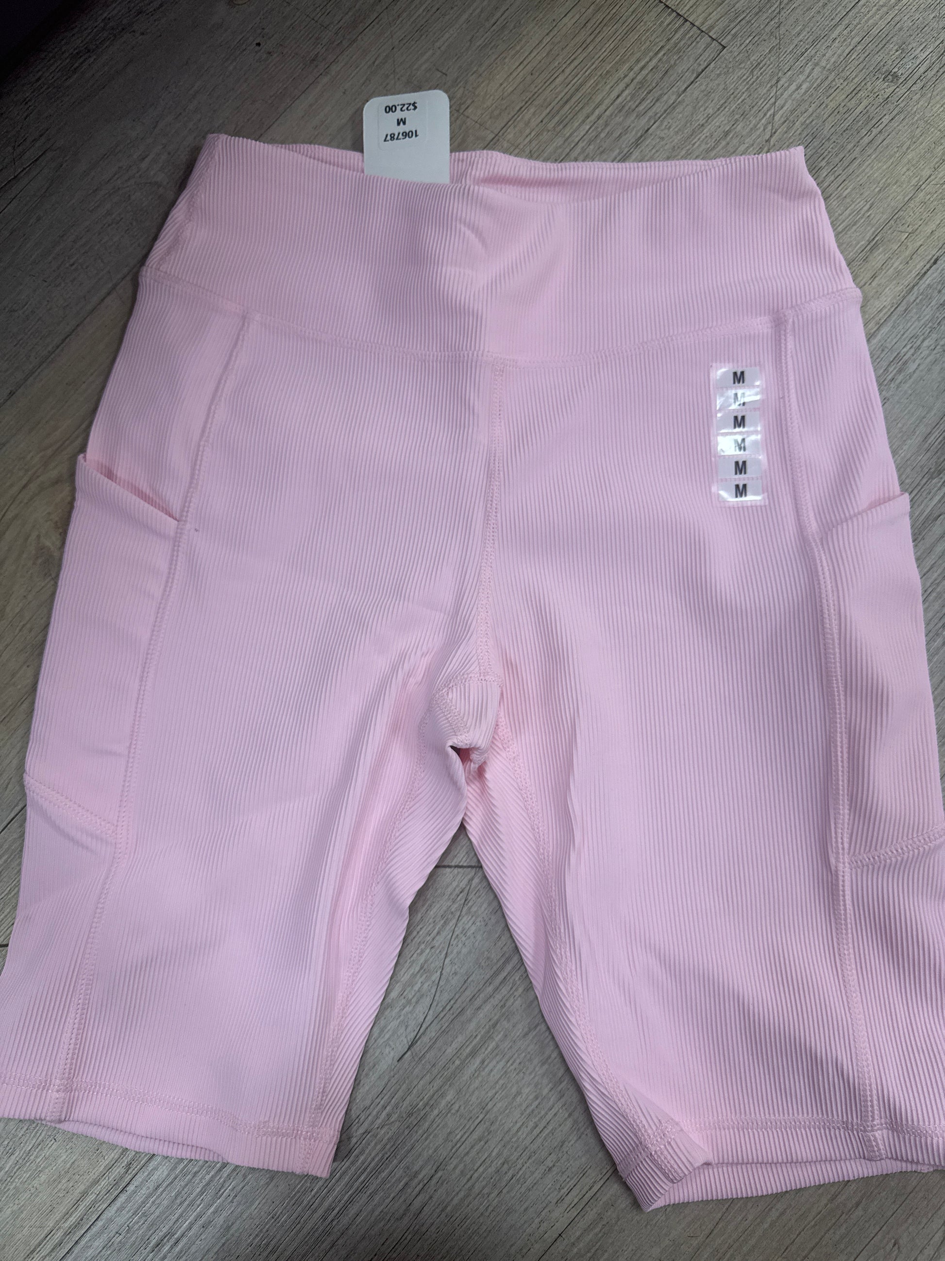 ROSE RIBBED BIKER SHORTS W/POCKETS