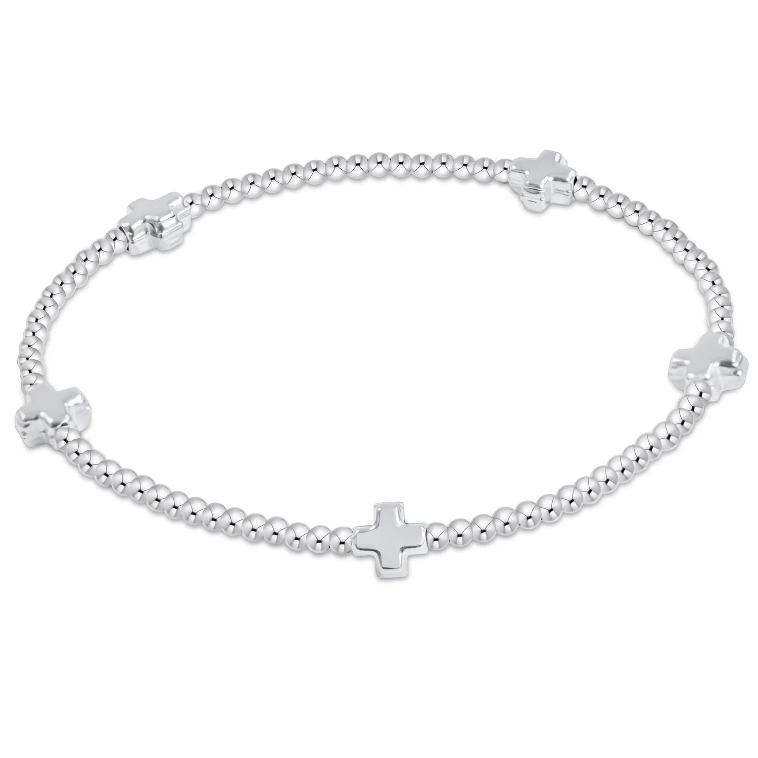 SIGNATURE CROSS SMALL STERLING PATTERN 2MM BEAD BRACELET - STERLING