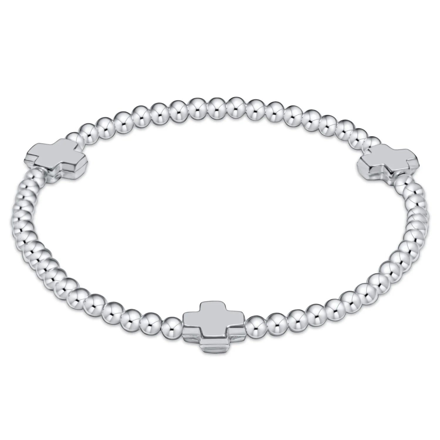 SIGNATURE CROSS STERLING PATTERN 3MM BEAD BRACELET - STERLING