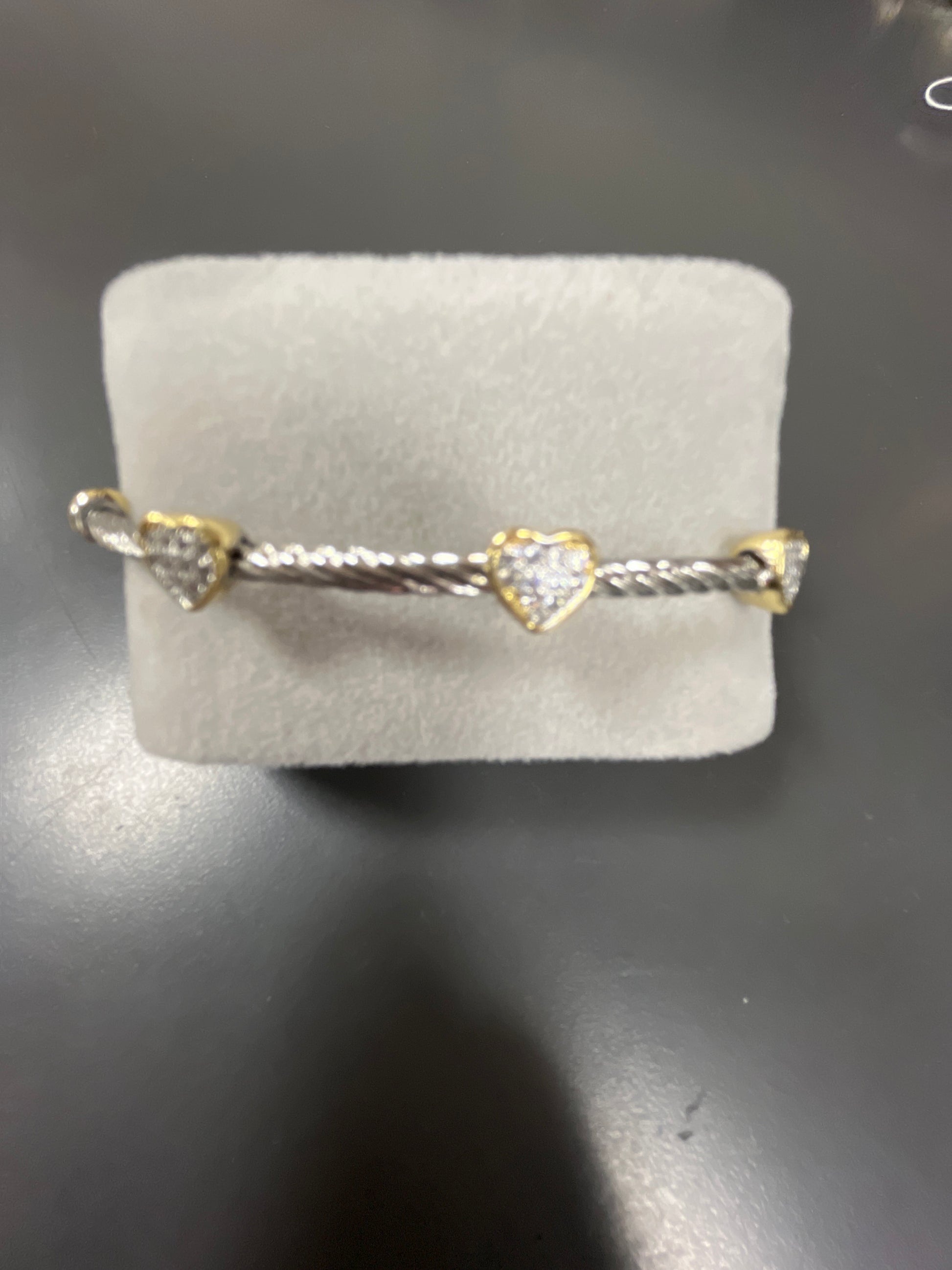 SILVER CABLE BRACELET WITH GOLD PAVE HEARTS & MAGNETIC CLASP