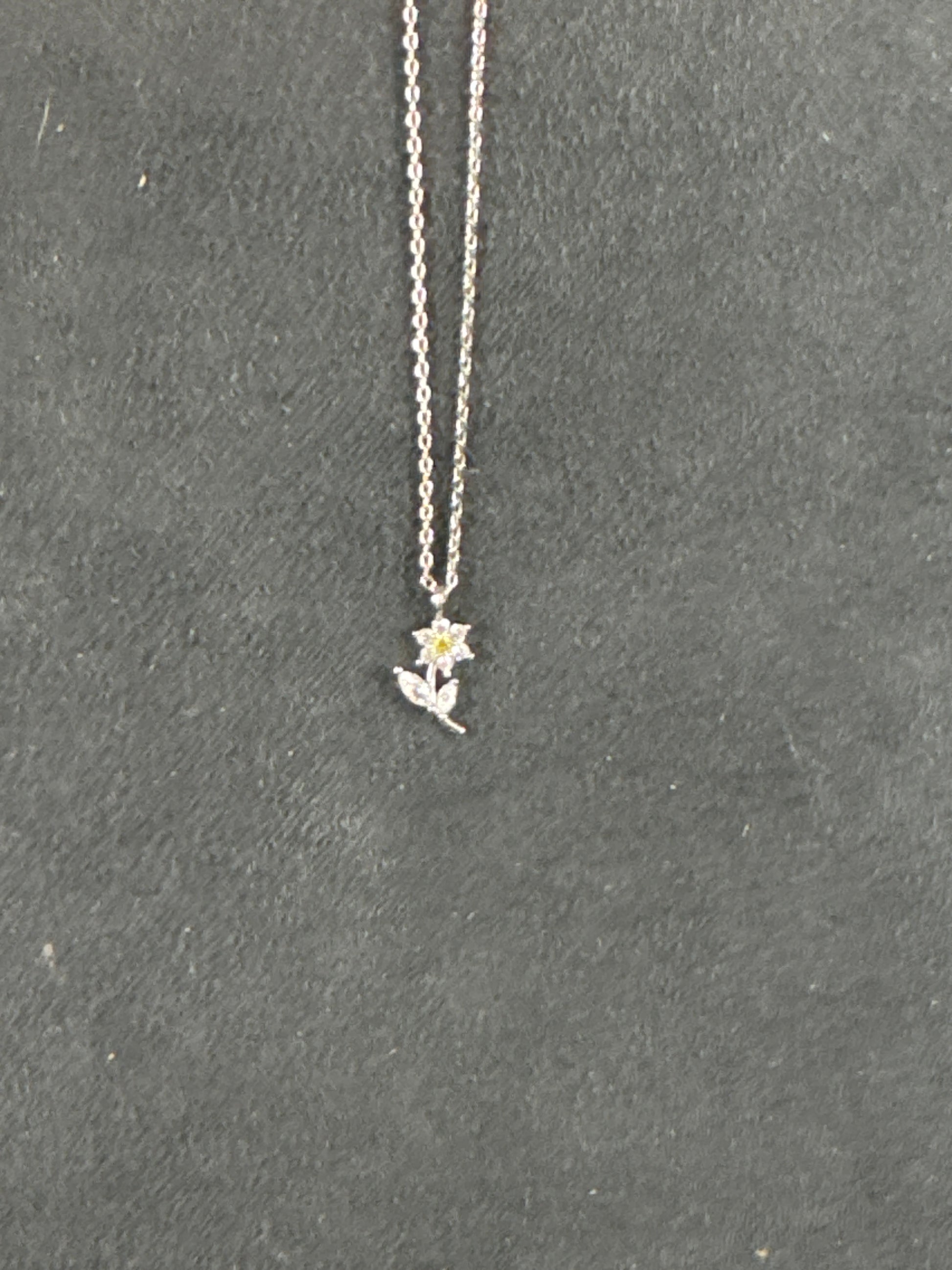 SILVER NECKLACE W/CRYSTAL FLOWER PENDANT
