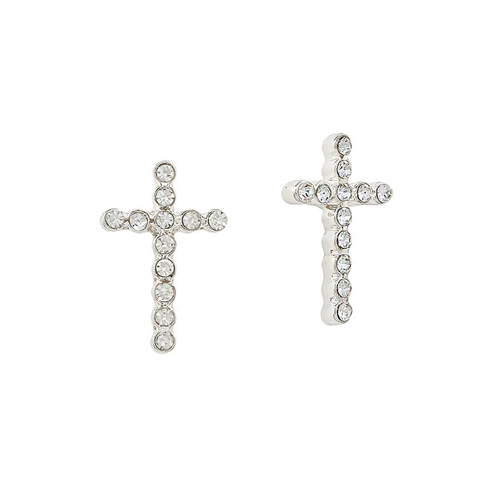 Silver Rhinestone Cross .5" Stud Earring